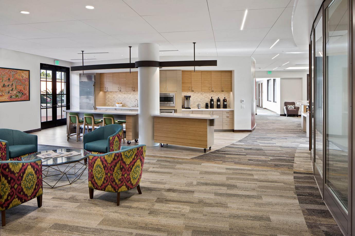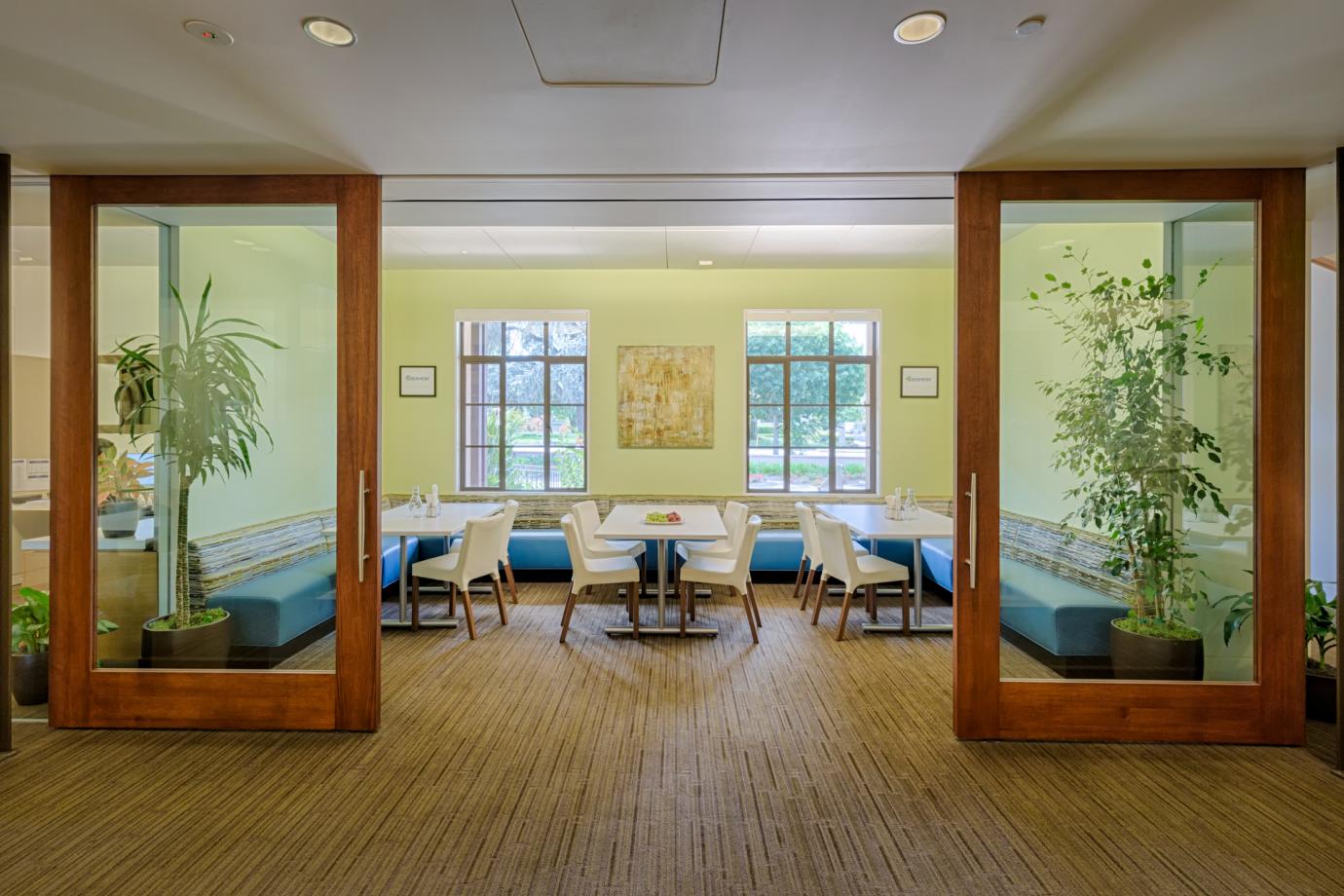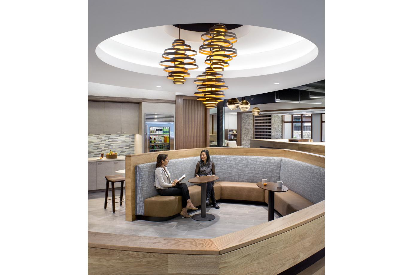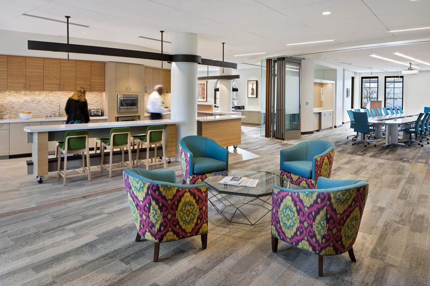 - At a Private Equity firm the food space became a sparkling side destination on the way to the boardroom. Pre meetings and post meeting discussions are extended and boardroom meals can be quietly laid out in this adjacent space. Meetings are supported by food but not interrupted by food service.