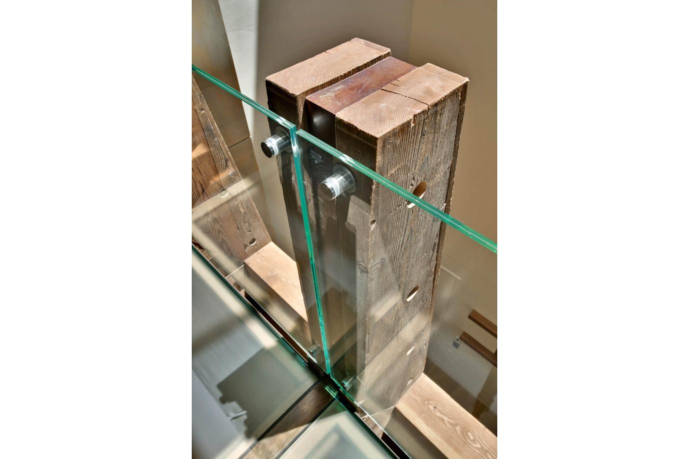 A 260 foot long curving pathway defined by 283 suspended salvaged wood members unites both wings of the Moore Foundation’s headquarters.