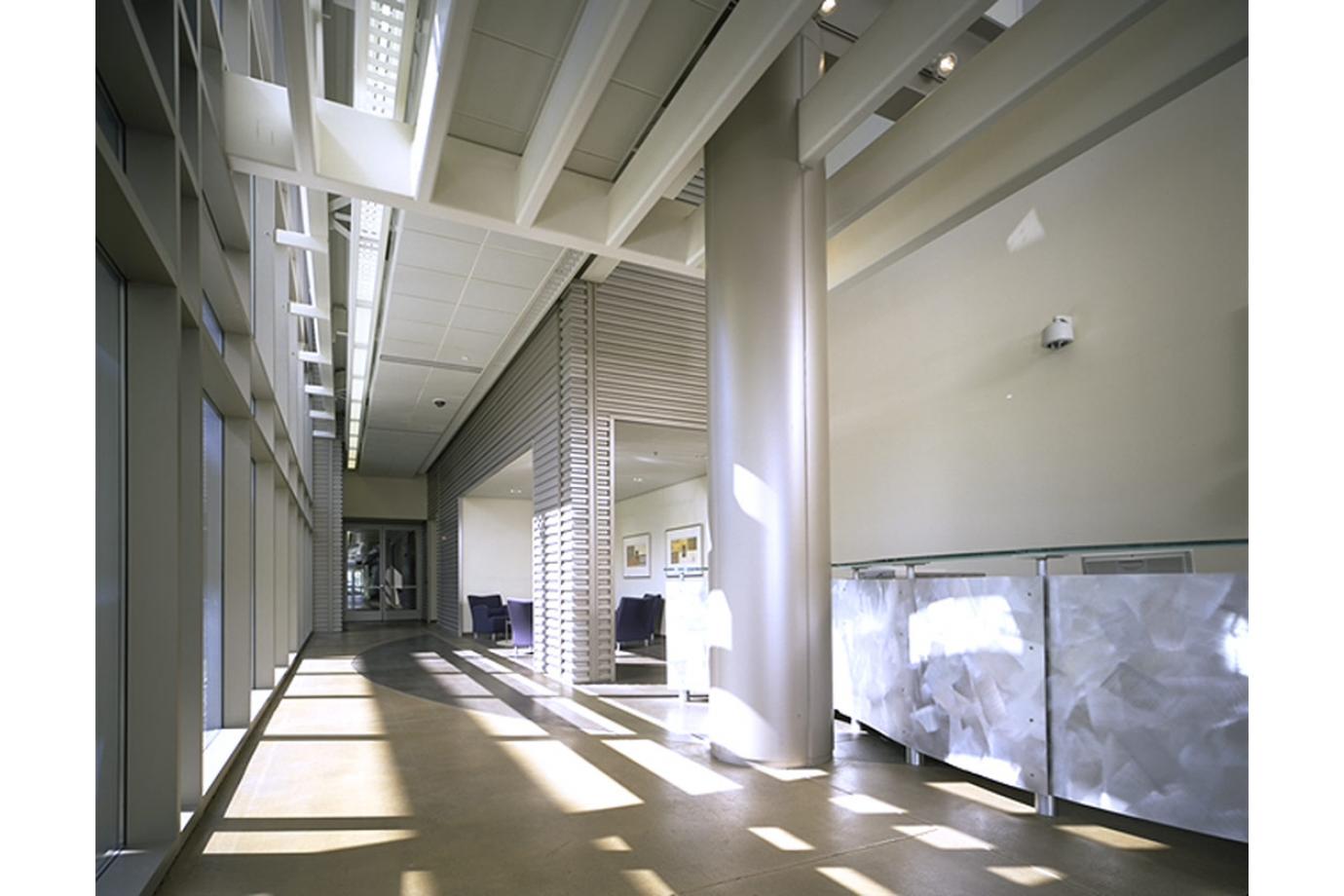 The dynamic curving steel and glass envelope belies the simple and straight forward layout that houses extensive server banks, screens emergency generators, and meets Essential Facility Standards with N+1 mechanical and electrical system redundancies.