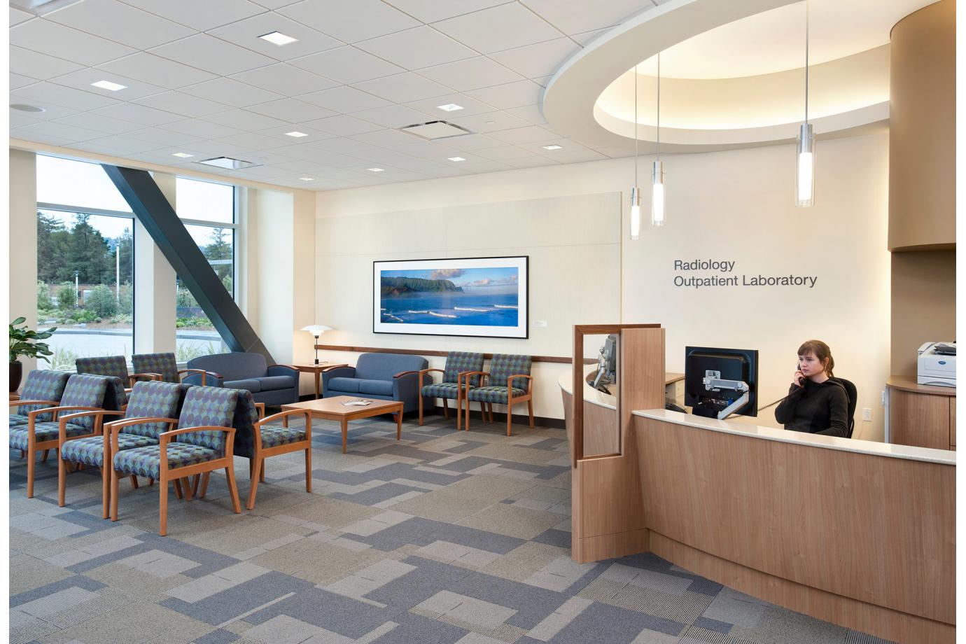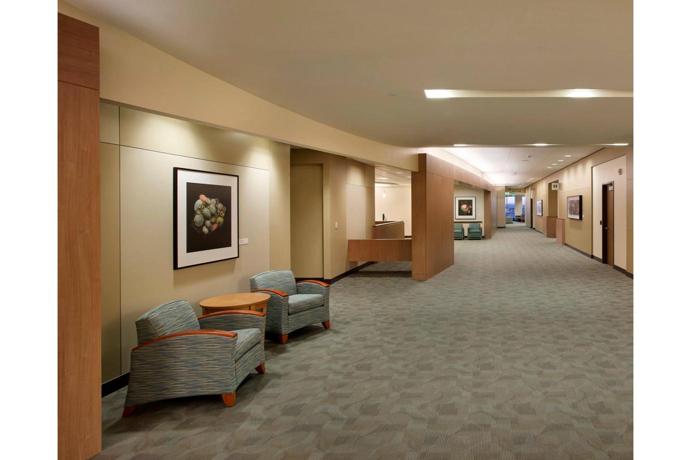 The project included development of a destination two-story lobby connecting the hospital, conference center, clinics and lab spaces. The design created clear, direct patient access with an open, common reception and waiting highlighted with natural light and views.